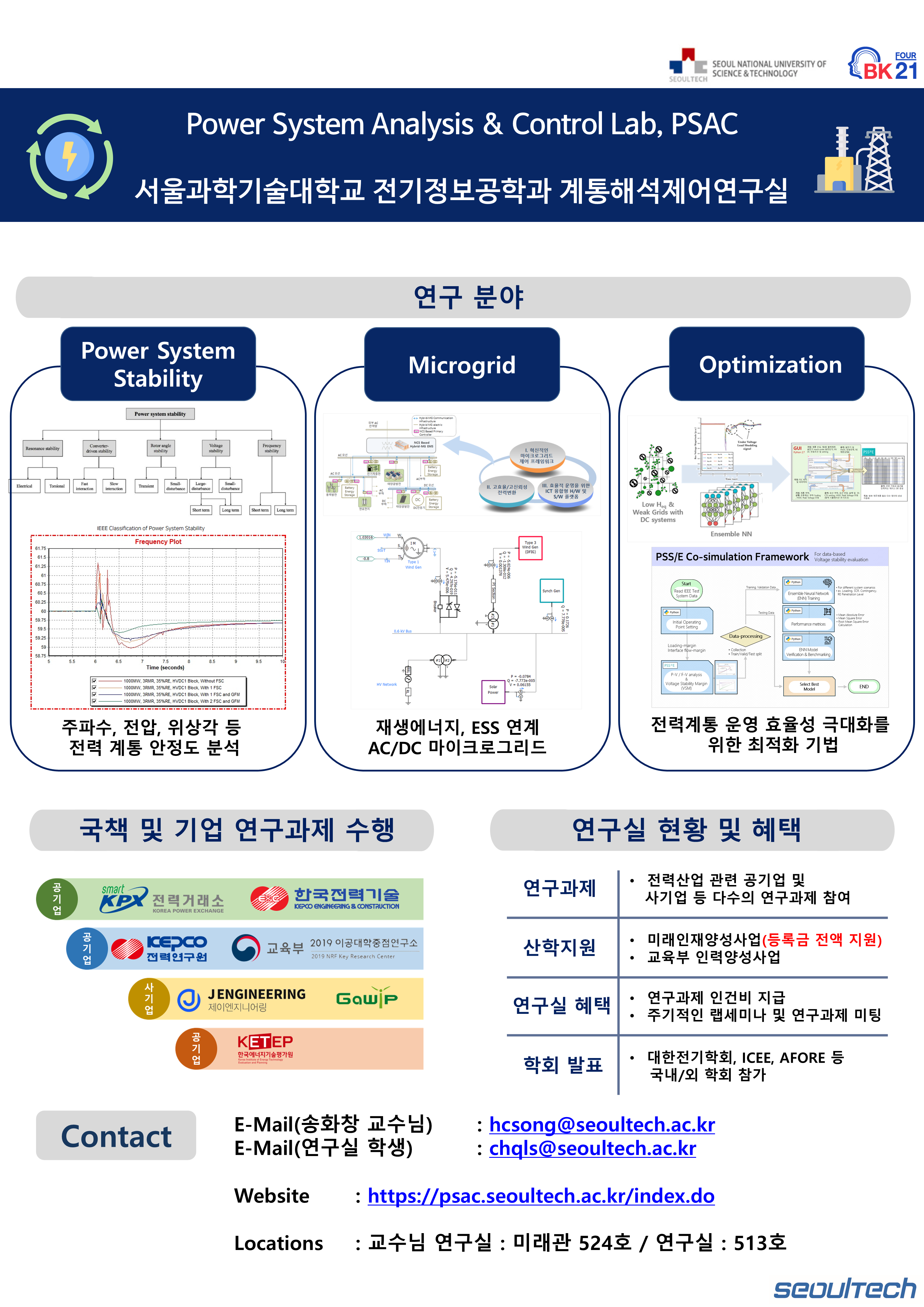 안녕하세요, 서울과학기술대학교 전기정보공학과 송화창 교수님 계통해석제어연구실입니다.